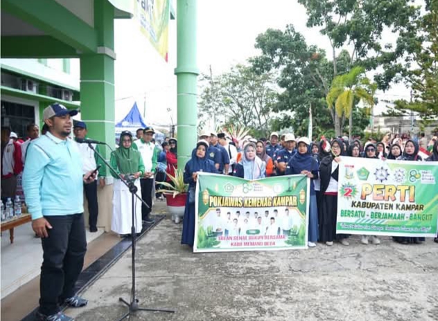 Rasimedia.com – Mewakili Bupati Kampar, Plt. Asisten I Sekretariat Daerah Kabupaten Kampar, T. Said Hidayat, S.STP, M.IP, secara resmi melepas kegiatan Gerak Jalan Kerukunan (Harmoni Fun Walk) dalam rangka memperingati Hari Amal Bakti (HAB) ke-80 Kementerian Agama Republik Indonesia. Kegiatan ini dilaksanakan di Lapangan Kantor Kementerian Agama Kabupaten Kampar, Kamis (8/1).