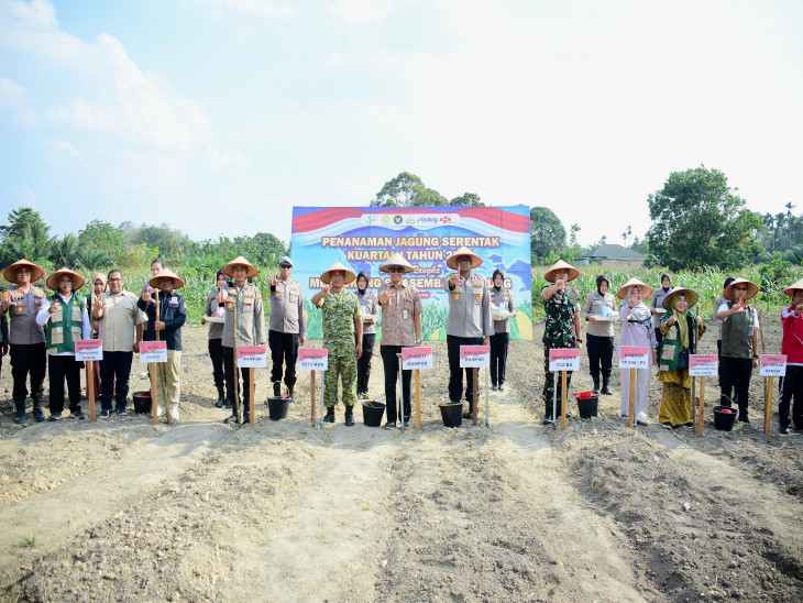 Sementara itu, Kapolres Kampar AKBP Bobby Putra Subayang, SIK menyampaikan bahwa kegiatan tersebut merupakan bagian dari penanaman jagung serentak Kuartal I Tahun 2026 dalam rangka mendukung program swasembada pangan nasional.